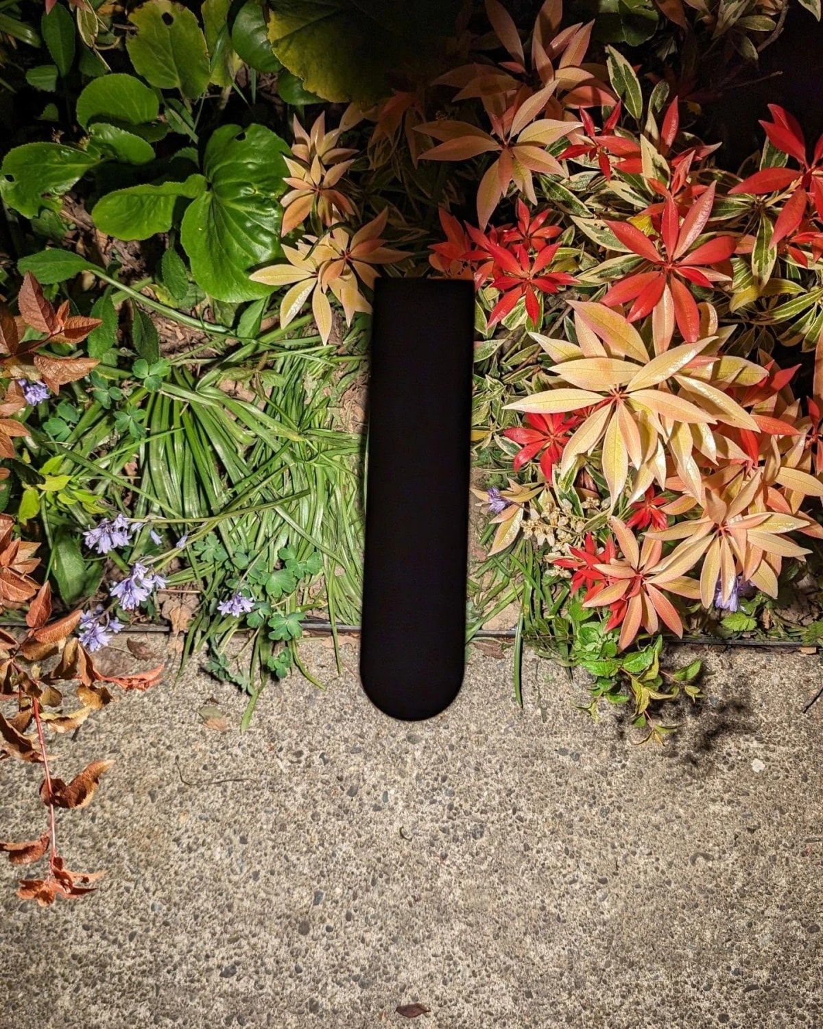 close-up of modern garden light at night